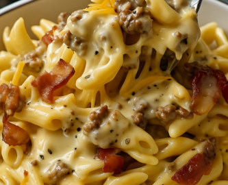 Taste the dish and season with salt and pepper. Serve warm, garnished with more cheese, bacon bits, or even a drizzle of burger sauce if you’re feeling fancy!