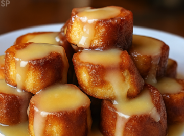 Soft and pillowy cinnamon roll bites are dipped in a rich egg mixture, cooked to golden perfection, and drizzled with icing. Perfect for breakfast, brunch, or a delightful snack!