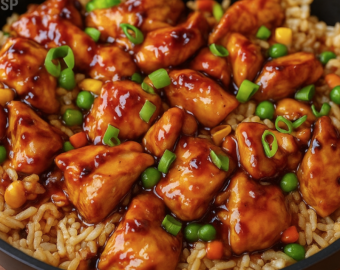 Sweet smoky BBQ chicken served over fluffy rice with tender veggies — a one-pan wonder full of comfort and flavor!